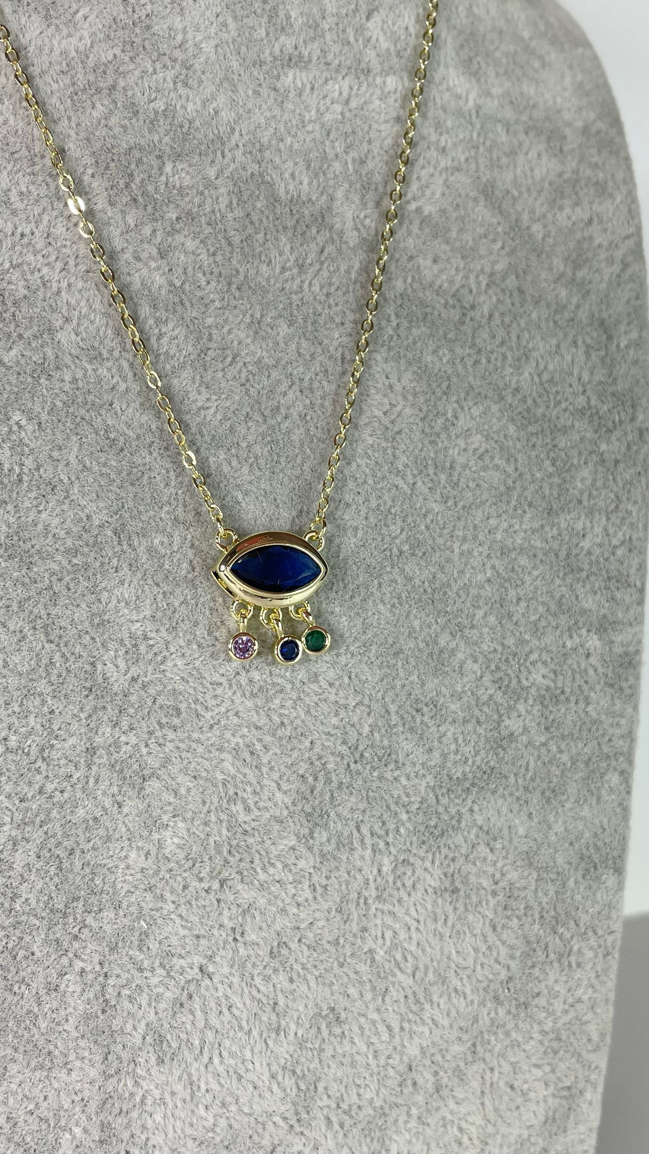Mavi Göz Sallantılı Gold Kolye